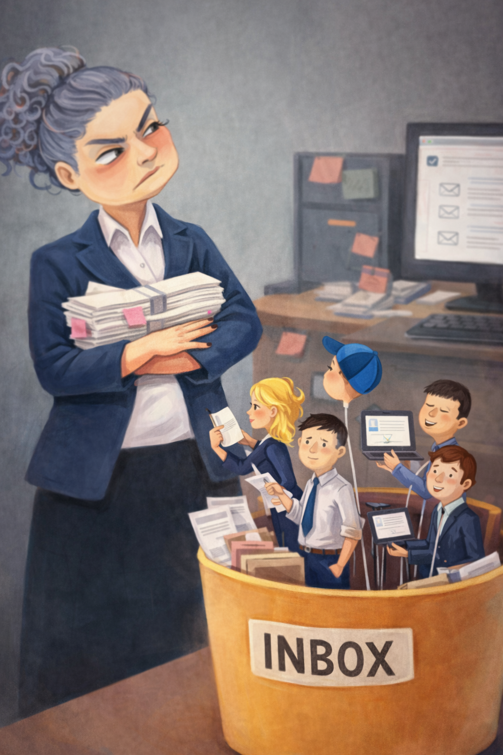Se mi hanno promosso deve essere tutto al mio livello. Anche le mail degli altri. Anche le decisioni degli altri. Anche il lavoro degli altri. E così il ruolo diventa una casella di posta piena.
