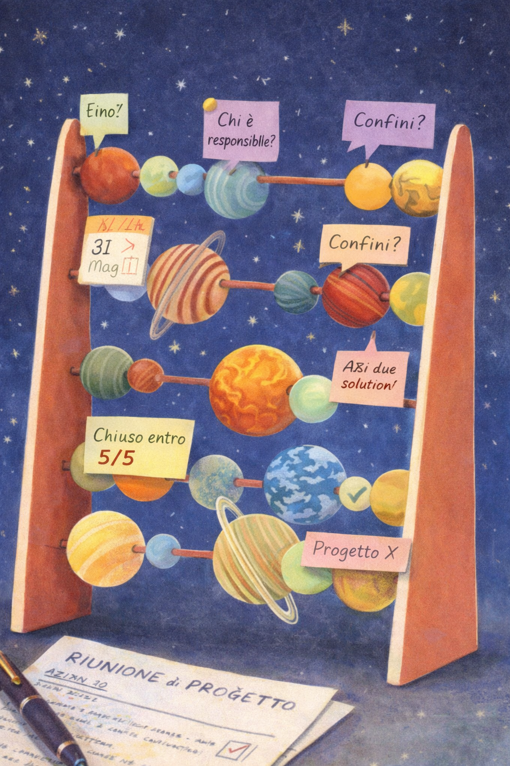 Nel mio lavoro i progetti hanno una data precisa. Non è un dettaglio. La scadenza non si negozia con la buona volontà. E quando manca una chiara identificazione di responsabilità, tempi e sovrapposizioni, la tensione si accumula in silenzio. Fino all’ultimo miglio. Lì esplode.